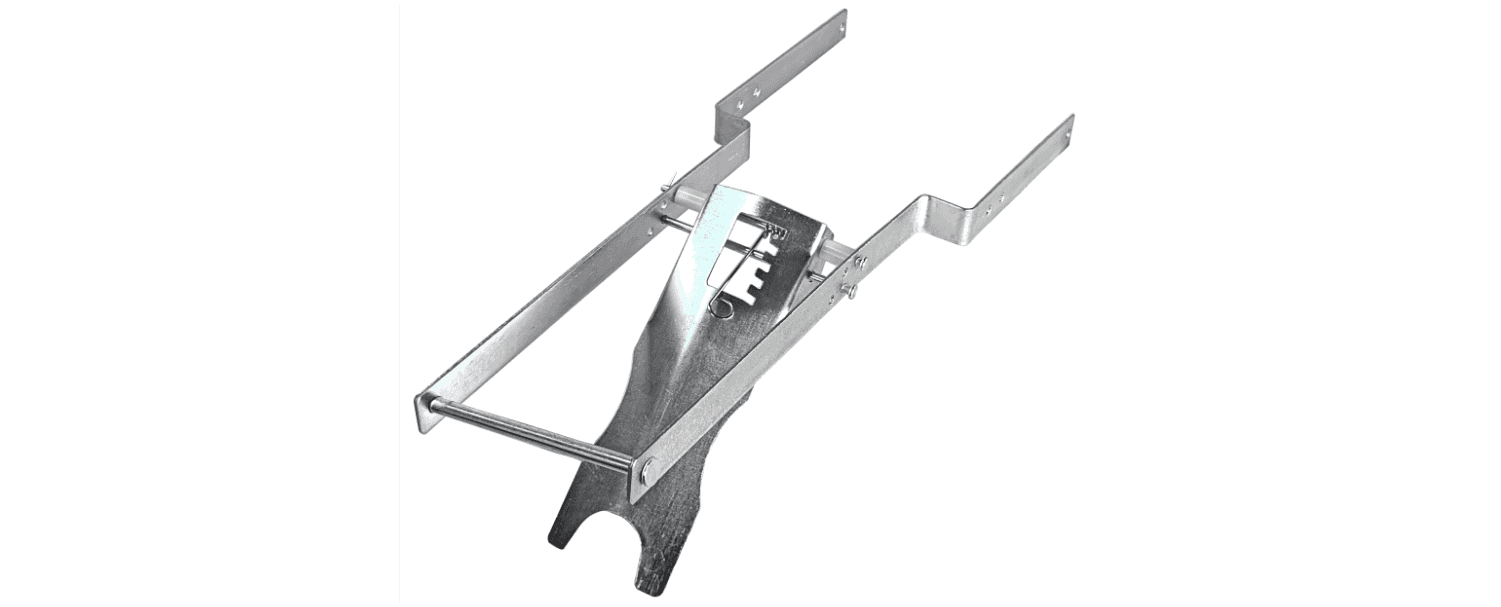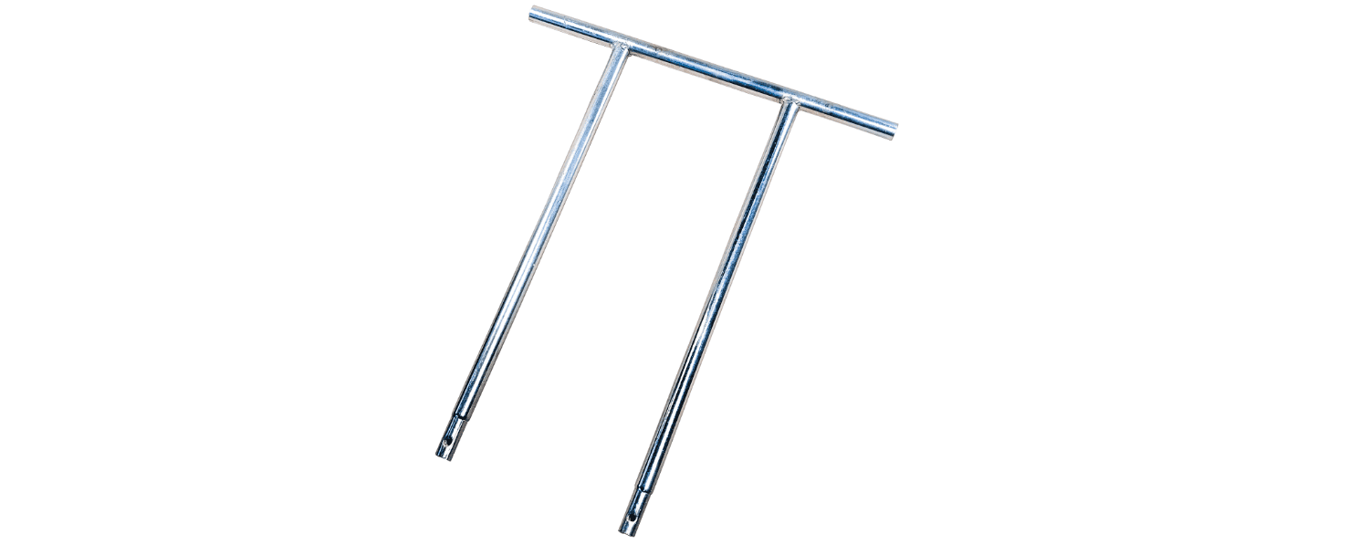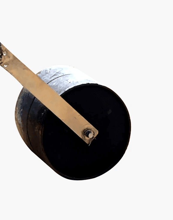 O rolo compactador vem separado em duas metades e precisa ser montado na estrutura que vai tampar a cova. Esta estrutura já tem uma trava instalada que você deve remover primeiro. Tire a trava dobrando a pontinha de metal da bailarina.
