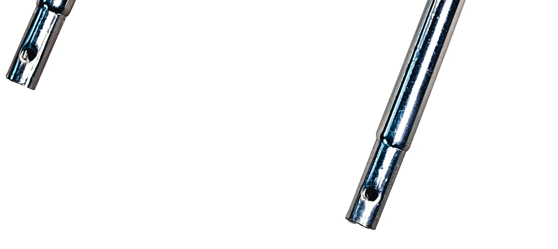 A parte superior e a inferior do guidão se conectam através de encaixes com furos alinhados.