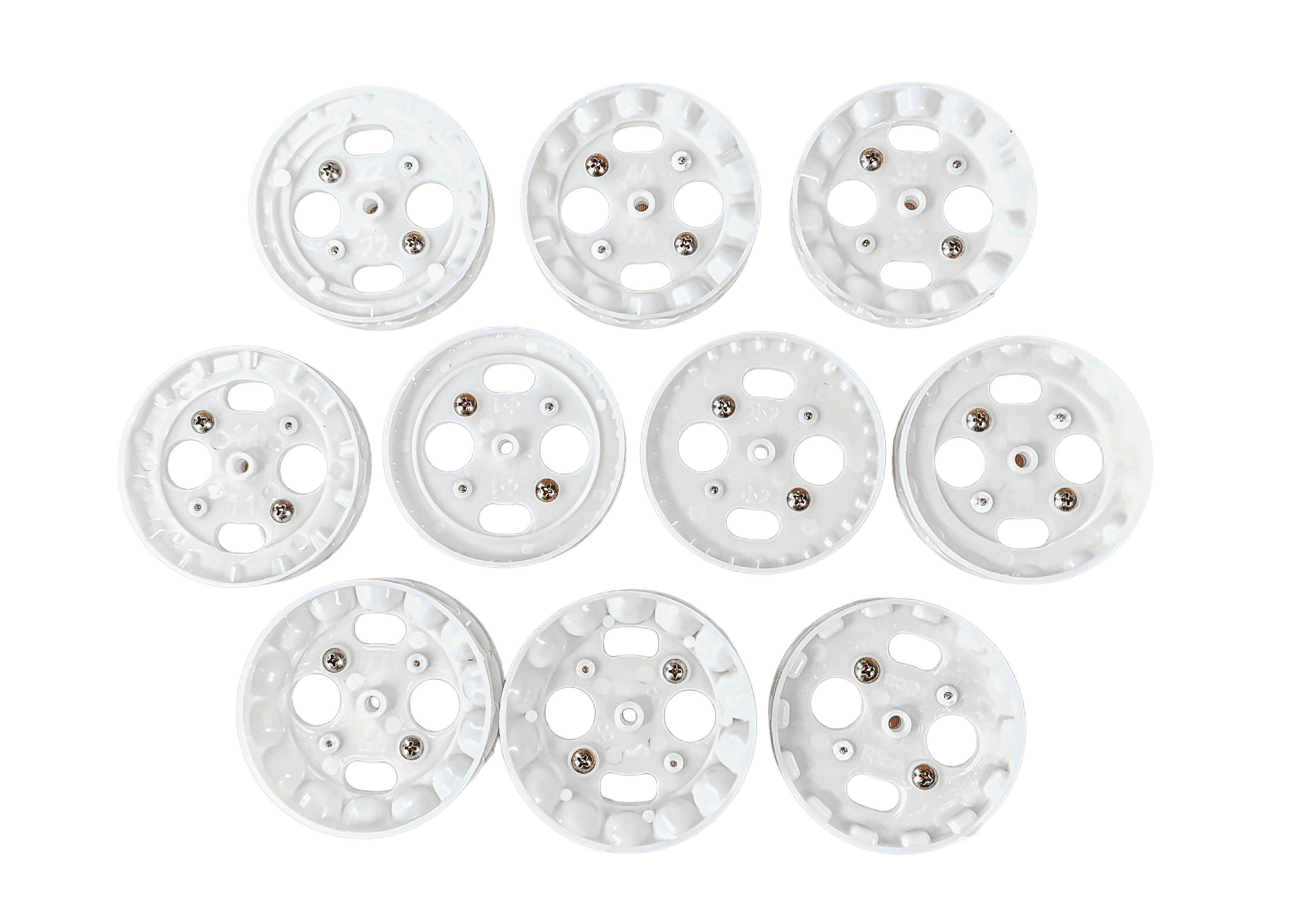 A plantadeira adubadeira vem com várias discos diferentes. Cada disco tem furinhos de tamanhos diferentes. Para sementes pequenas, você usa a peneira com furos pequenos. Para sementes grandes, você usa a peneira com furos grandes.