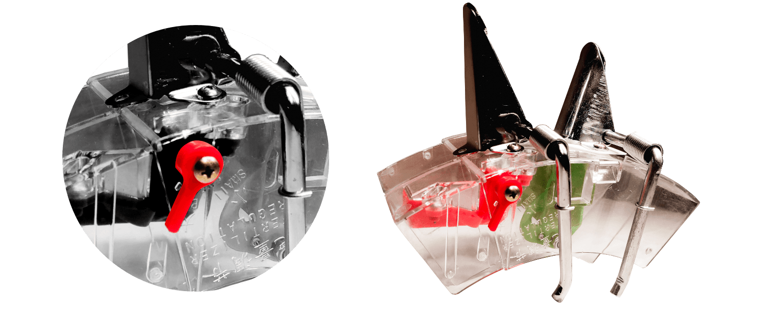 Na lateral da plantadeira tem um alavanca em cada bicode adubo que você movimenta para a direita ou para a esquesta, que controla quanto adubo sai. Se você quiser pouco adubo, ajusta para menos. Se quiser mais adubo, ajusta para mais.